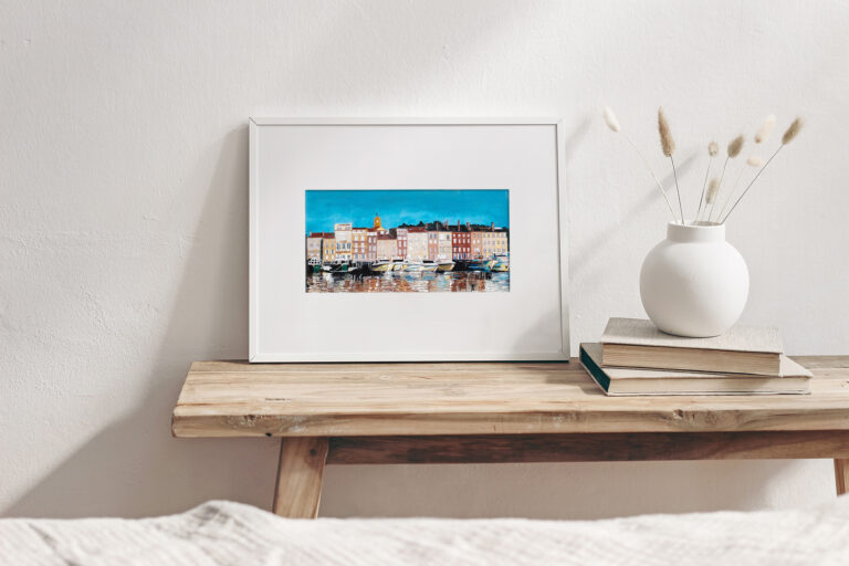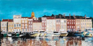 Saint Tropez harbour with its famous citadel is such an iconic scene. I feel it can not be mistaken for any other seaside town. To do it justice I painted this seascape in my studio. I was particularly taken with the reflections of the buildings and yachts on the water.
